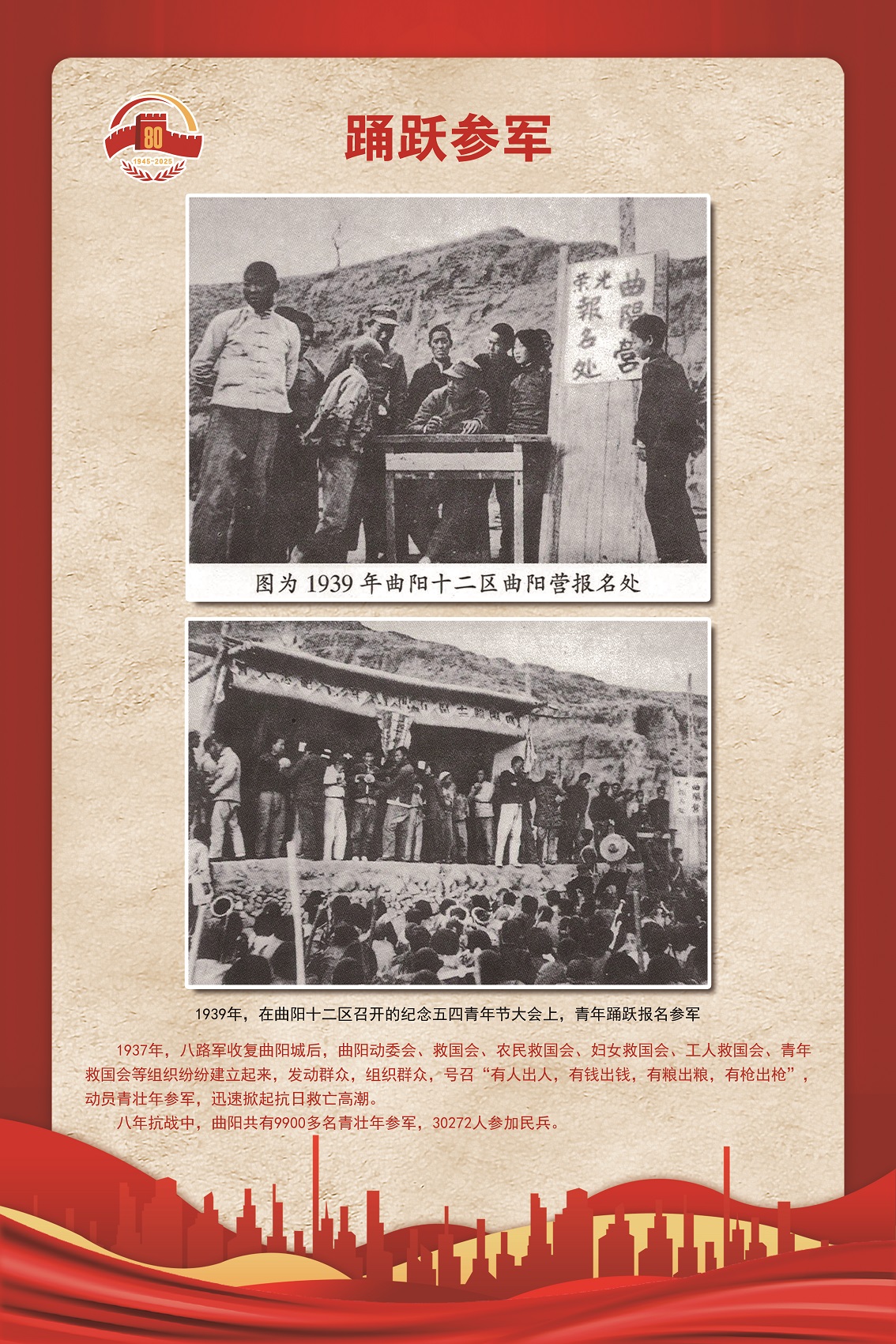 为纪念中国人民抗日战争暨世界反法西斯战争胜利80周年,充分展现曲阳人民在中国共产党领导下浴血奋战的英雄事迹,弘扬抗战精神,赓续红色血脉,曲阳县委党史办特举办党史图片展活动。