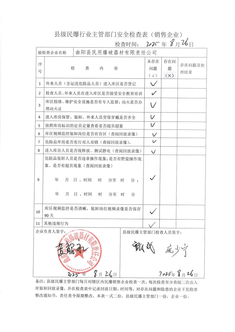 县发改局民爆行业安全检查表