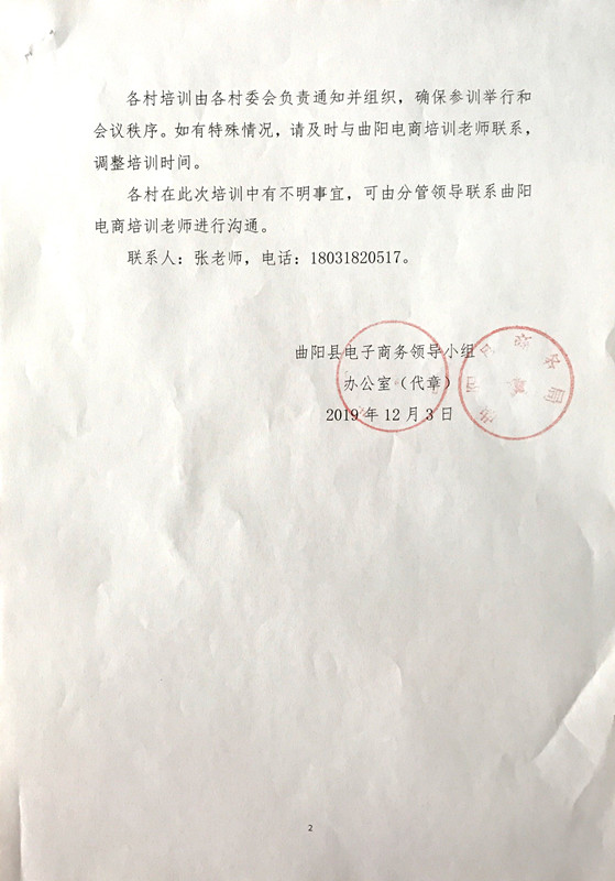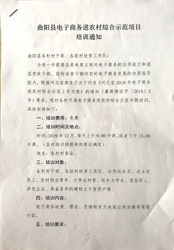 曲阳县电子商务进农村综合示范项目12月份培训通知