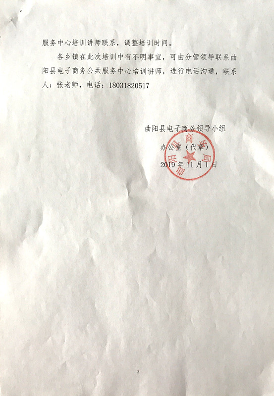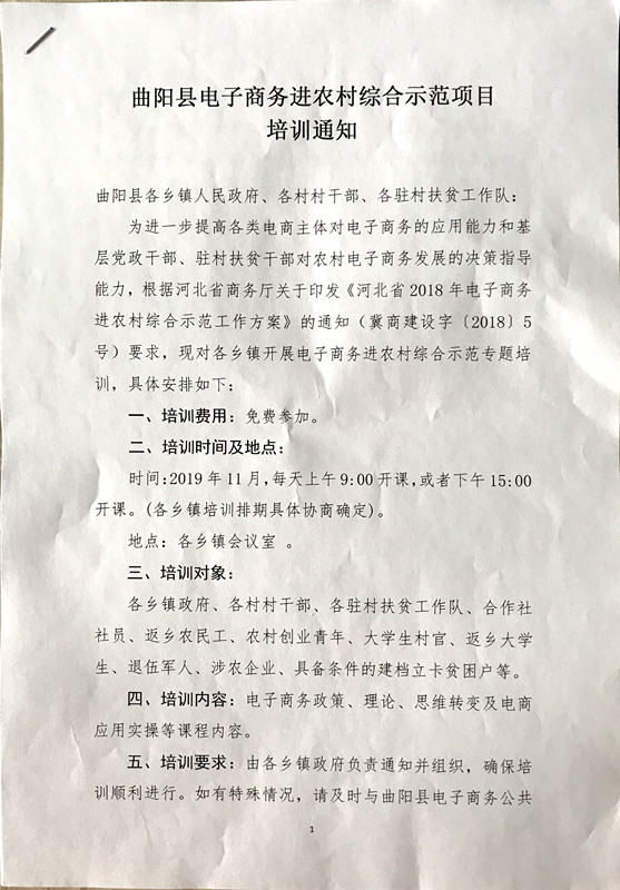 曲阳县电子商务进农村综合示范项目11月份培训通知
